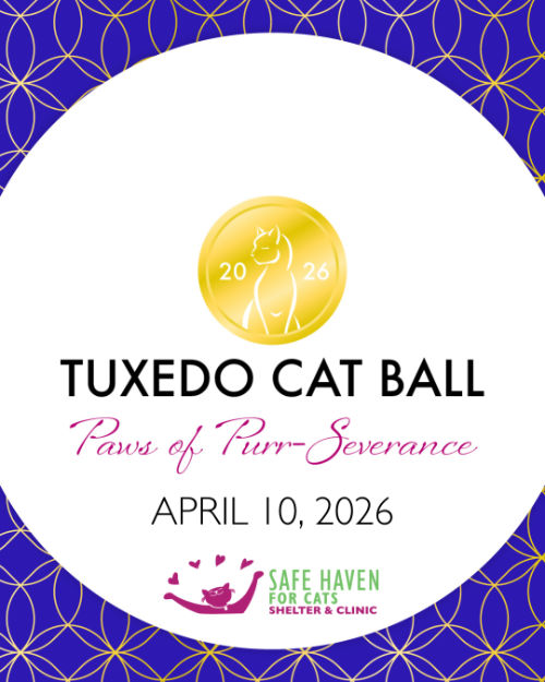 Our biggest fundraiser of the year is happening on April 10! The Tuxedo Cat Ball promises an unforgettable evening of dancing, dining, and making a difference for cats in need.